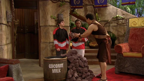 Brady is pronounced guilty and is seen being pulled away to the dungeon. He is then wearing an orange jumpsuit and shackles arounds his ankles, wrists, and neck. Boomer commands the guards to "Take those shackles off my brother, he is not an animal!" which earns a nasty threat from Brady, making Boomer retreat from his choice. Boomer shows the real criminal, Yappy the Parrot who purposely dropped a rumble rock into the coconut milk after Boomer called him a chicken. |